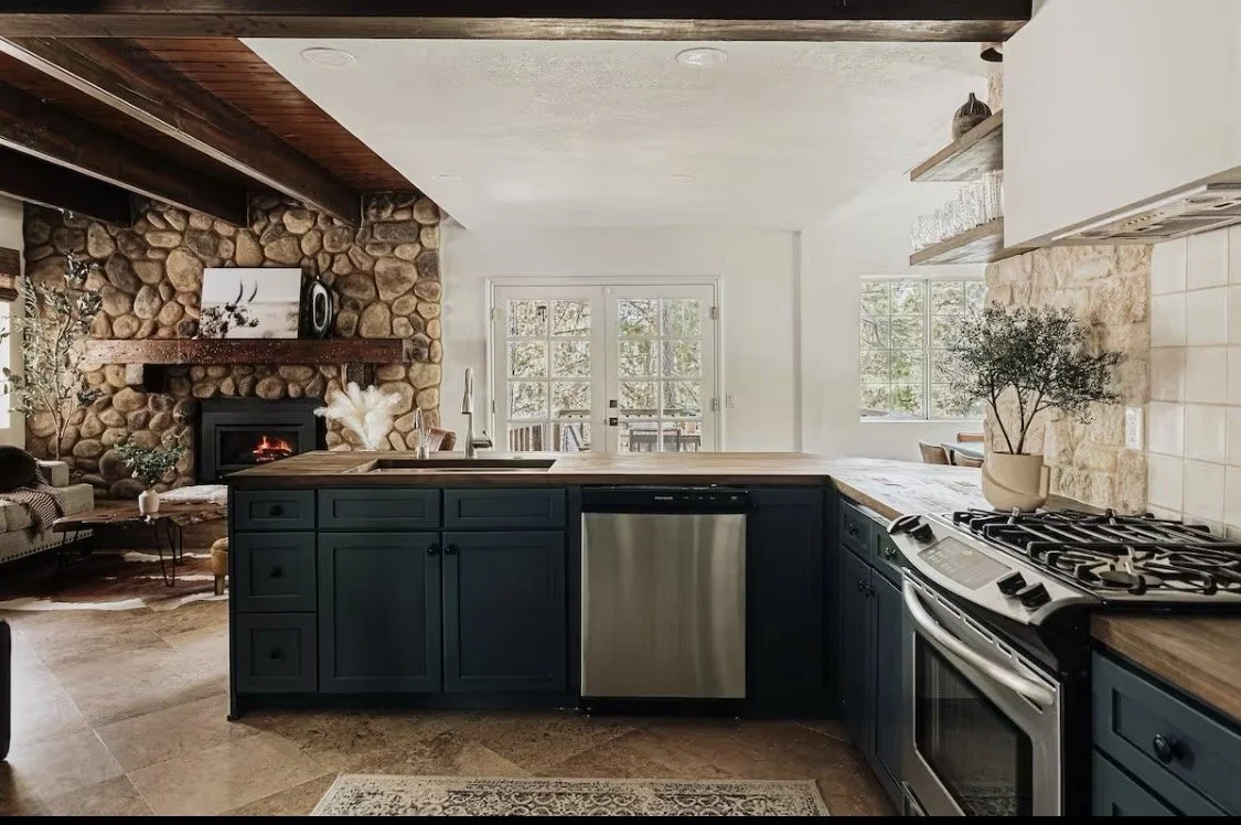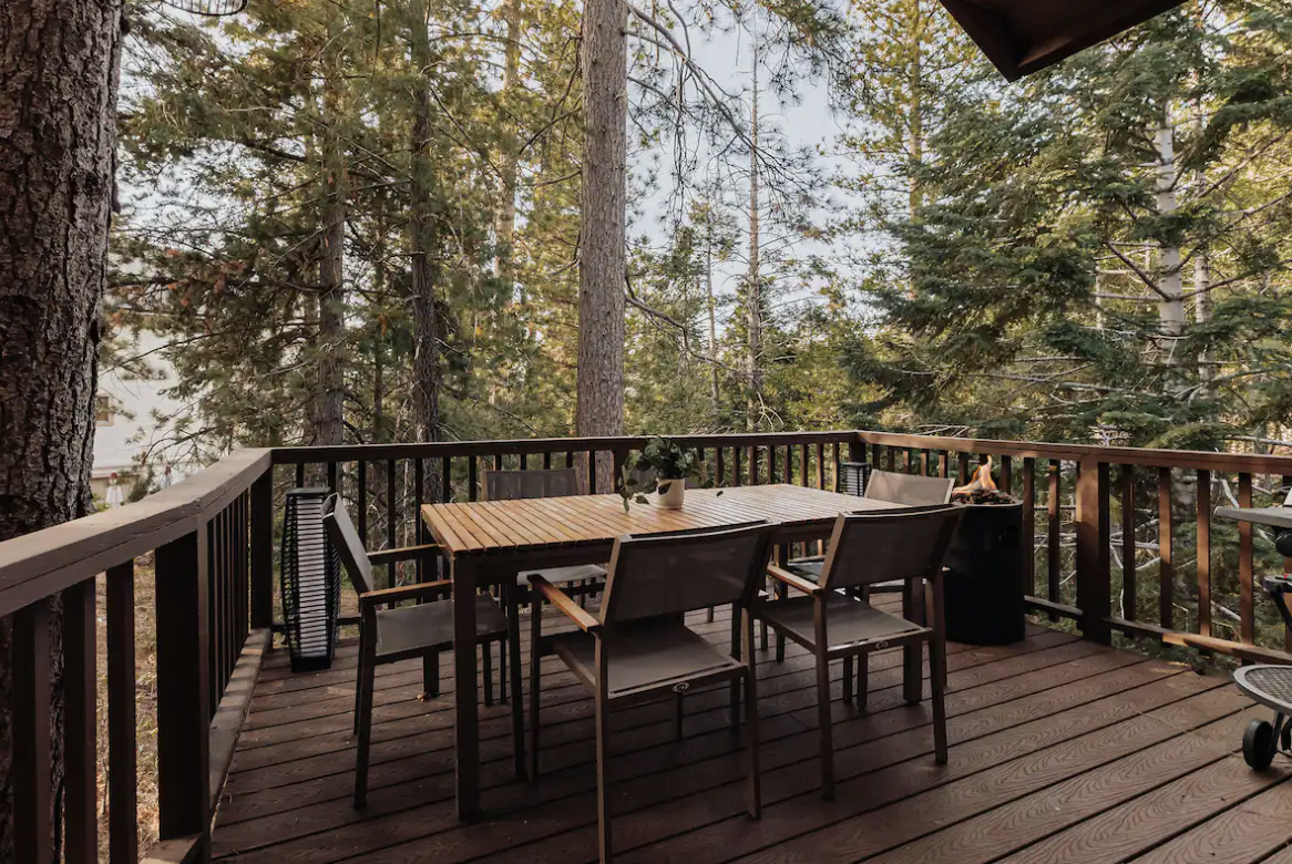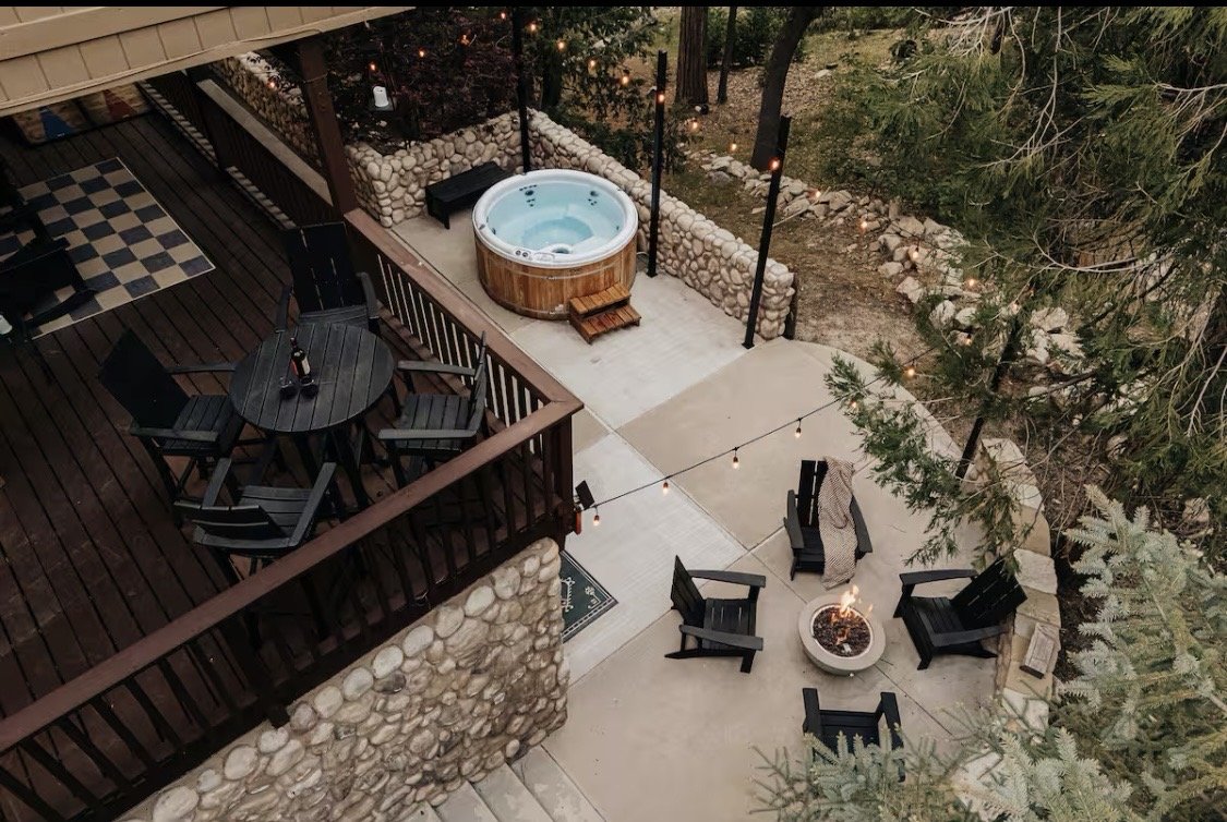 We’ll be nestled into a classic Lake Arrowhead cabin — tucked among the pines with all the touches: Pinterest worthy deck with a hot tub in the forest, a sauna, game room, private lake access trailheads, a firepit and cozy, bohemian “mountain-chic” interior. The house balances peaceful seclusion and modern comfort, surrounded by towering pine trees with plenty of space for us and Taliesin (and his friends!) to wander.